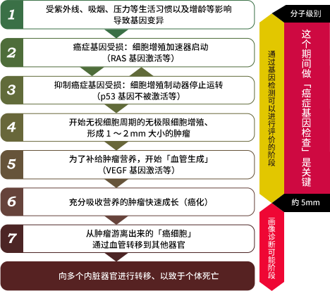 常见的癌症检测仪有PET和CT、MRI等图像诊断、以及内视镜检查,然而癌细胞不达到一定大小时是不会被发现的。不仅如此,当癌细胞已达到可以看到的大小时,1个癌细胞要经过5~20年的漫长岁月逐渐增殖形成。