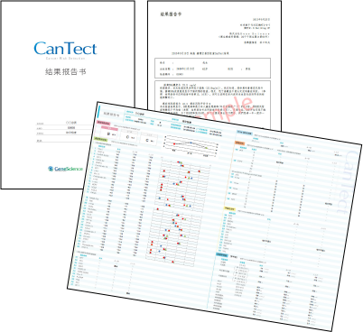 - 结果报告书(患癌可能性评价・基因发现解析・FREE DNA浓度・突然变异解析・甲基化解析・血液学检测)※可为您提供中文结果报告书