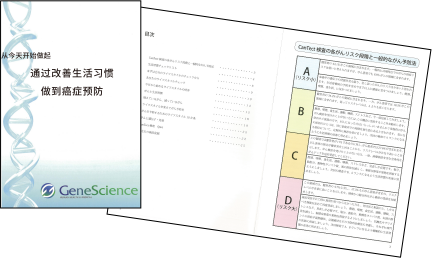 - 检测促使癌症增殖基因(加速)的活动频度。 解析各种与癌症相关的47种基因(RNA)、并反映在患癌可能性评价表当中。