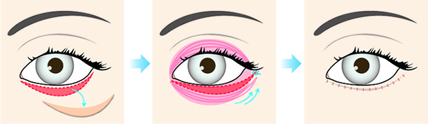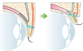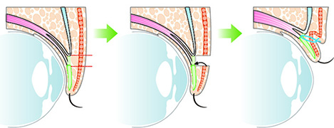 [Fig.] Remove the skin and the orbicularis muscle, and suture it below to form a fold line.