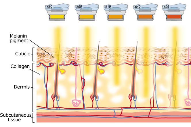 By sorting out five types of filters, it is possible to choose wavelengths and the output power of light is more subtle than conventional optical therapists and can handle many problems at the same time.