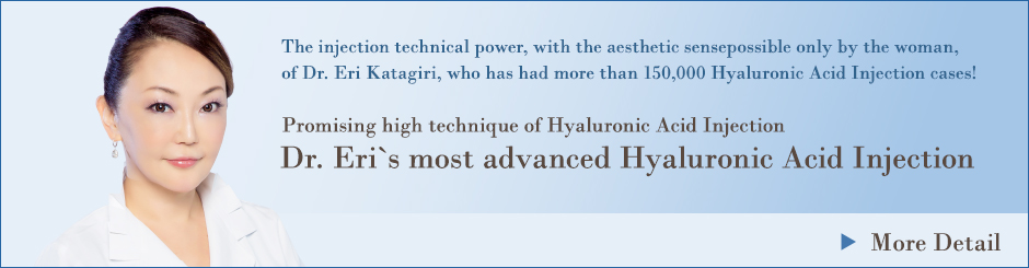 The injecting technical power of Dr. Eri Katagiri, who has had more than 150,000 Hyaluronic Acid Injection cases domestically as well as internationally was recognized and then she has received the special authorized title of “Experienced Injector” as well as Certified Trainer” from Galderma Inc. (Switzerland), the global largest dermatology specialty pharmaceutical company. In Eri Clinic Omotesando, Dr. Eri by herself provides from counseling assessment to therapy consistently.