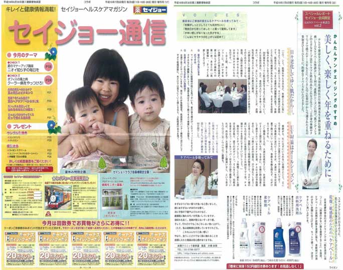 「セイジョー通信」企画「スペシャルレポート」の中で、平成19年5月8日に衣理クリニック表参道(エリクリニック)院長 片桐衣理が講演を行った「LIONケアベール座談会」の様子が掲載されています。