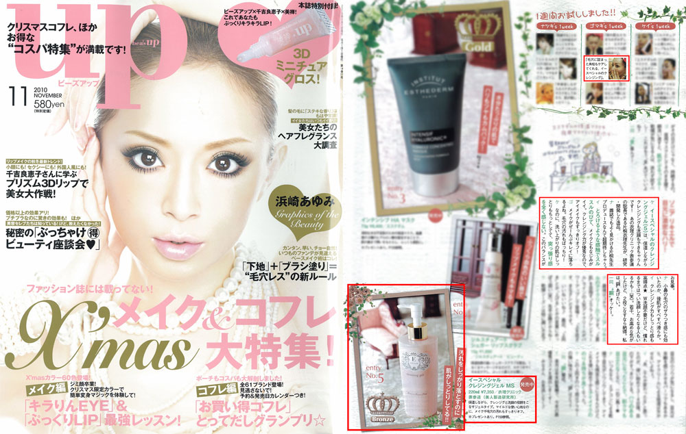 『bea’sUP』11月号、「金のコスメ 銀のコスメ」にて、美人製造研究所 イースペシャル クレンジングジェルが紹介され、メイクや汚れをしっかり落とすのにもっちりすべすべになる!との好評価と共に銅賞をいただきました。