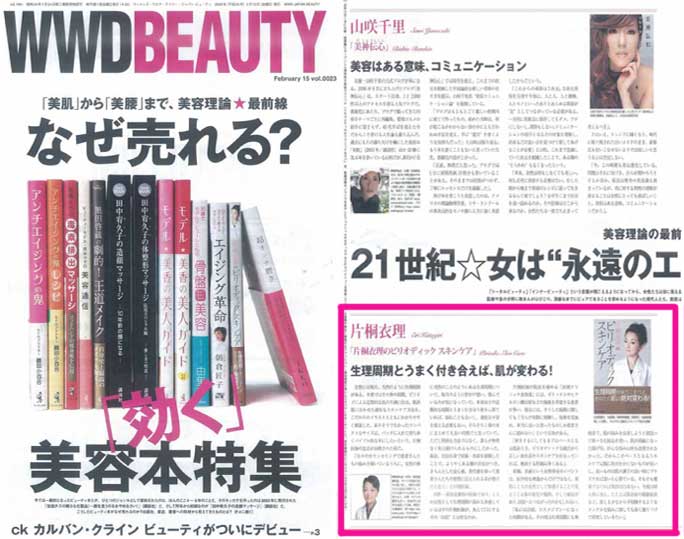 「WWD BEAUTY2月15日号」企画「なぜ売れる?“効く”美容本特集」にて、衣理クリニック表参道(エリクリニック)院長 片桐衣理が著書「片桐衣理のピリオディック スキンケア」について語っています。