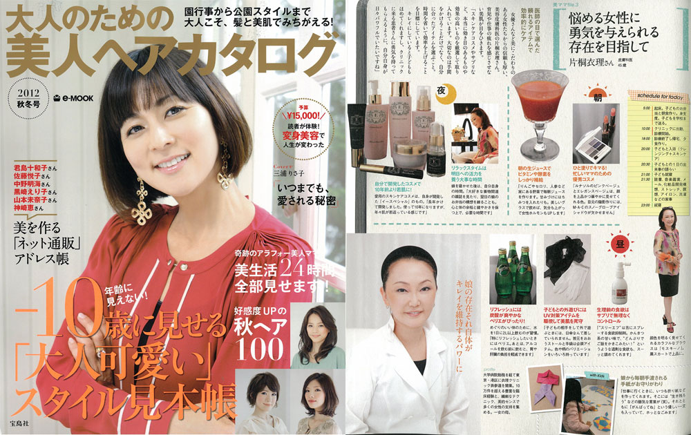 『大人のための美人ヘアカタログ』2012年秋冬号、「美ママの朝・昼・夜キレイ生活」にて、衣理クリニック表参道院長 片桐衣理が、生活習慣や美容法についてご紹介させて頂きました。