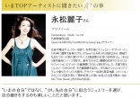 女性誌をはじめさまざまなメディアで活躍するトップアーティストのスペシャルインタビュー『いまTOPアーティストに聞きたい10の事』がUPされました!今回はジュエリーデザイナー 永松麗子さんです!
