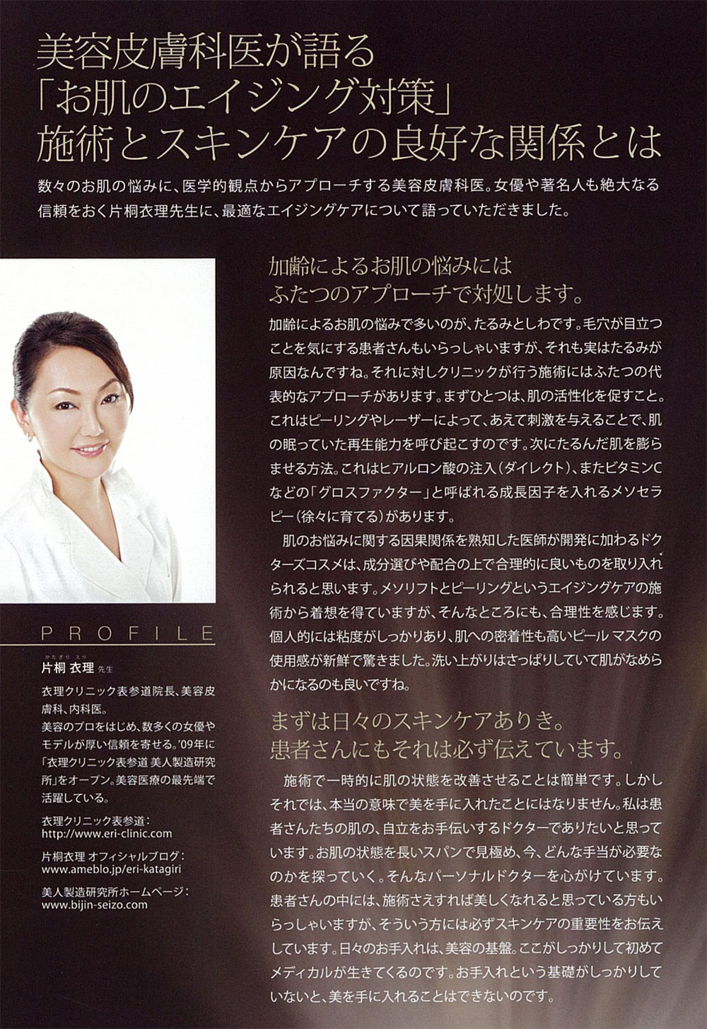 ヘレナルビンスタインメンバーに送付される会報誌『VISIONARY BEAUTY』にて、衣理クリニック表参道院長 片桐衣理が、お肌のエイジングケアについてコメントさせて頂きました。
