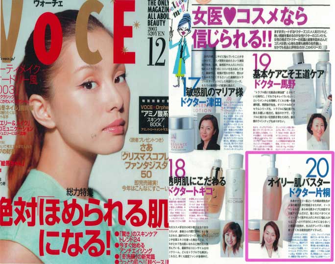 「VOCE 12月号」の企画「女医コスメなら信じられる!!」の中で、大人のアンバランス肌を救ってくれる救世主的アイテムとして、衣理クリニック表参道(エリクリニック)院長 片桐衣理の開発したイースペシャルが紹介されました。