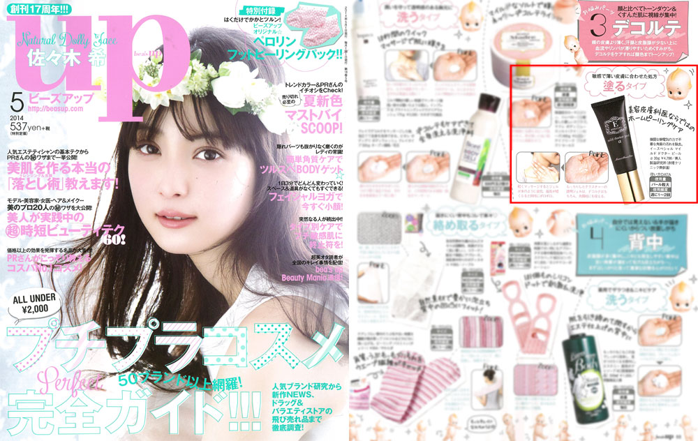 『bea’sup』5月号、「簡単角質ケアでツルスベBODYゲット」にて、衣理クリニック表参道院長 片桐衣理がプロデュースするドクターズコスメ「イースペシャル マイルドドクターピールα」をご紹介いただきました。