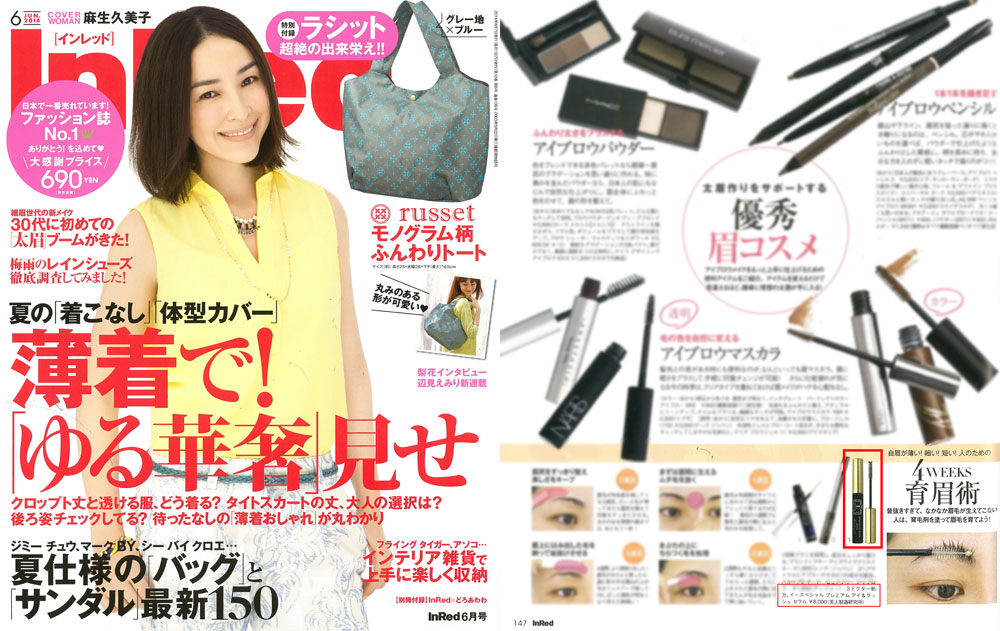 『InRed』6月号、【初めての「太眉」ブームがきた!】にて、眉毛の育毛に、衣理クリニック表参道院長 片桐衣理がプロデュースするドクターズコスメ「イースペシャル プレミアム アイ&ラッシュ セラム」が掲載されました。是非、ご覧くださいませ。