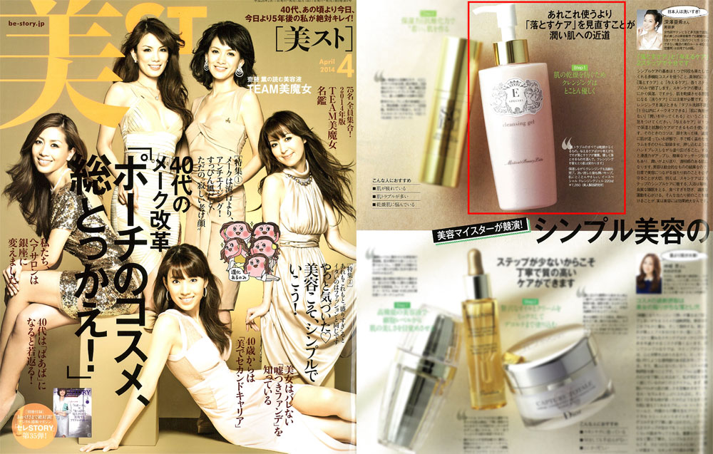 『美ST』4月号、「シンプル美容の効かせるレシピ」にて、美容家の深澤亜希さんが、衣理クリニック表参道院長 片桐衣理がプロデュースするドクターズコスメ“イースペシャル”より、「クレンジングジェル」をご紹介くださいました。是非、ご覧くださいませ。