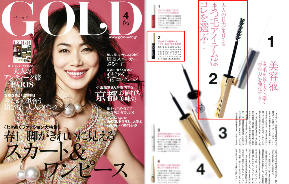 『GOLD』4月号、「地まつ毛育てて目力咲かせましょう!」にて、衣理クリニック表参道院長 片桐衣理がプロデュースするドクターズコスメ“イースペシャル”より、「プレミアム アイ&ラッシュ セラム」が掲載されました。 是非、ご覧下さいませ。