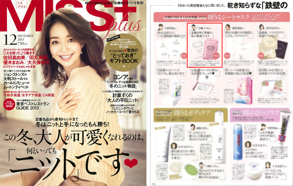 『MISS Plus』12月号、【乾き知らずな「鉄壁の保湿コスメ」はコレ!】にて、モデル・ビューティジャーナリストの中嶋マコトさんが、衣理クリニック表参道院長 片桐衣理がプロデュースするドクターズコスメ“イースペシャル”より「衣理モイスチャーマスク」をご紹介くださいました。是非、ご覧下さいませ。