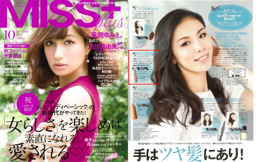 『MISSPlus』10月号、「33歳、美人の決め手はツヤ髪にあり!」にて、モデルの森理世さんが、衣理クリニック表参道院長 片桐衣理がプロデュースするドクターズコスメ“イースペシャル”「クレンジングジェル」をご紹介くださいました。是非、ご覧くださいませ。