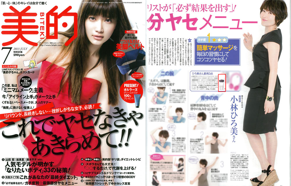 『美的』7月号、「最強部分ヤセメニュー」にて、美容家の小林ひろ美さんが、衣理クリニック表参道院長 片桐衣理がプロデュースするドクターズコスメ“イースペシャル”より、「ドクターピールボディ」を“ボディケアの愛用品”と、ご紹介くださいました。是非、ご覧下さいませ。