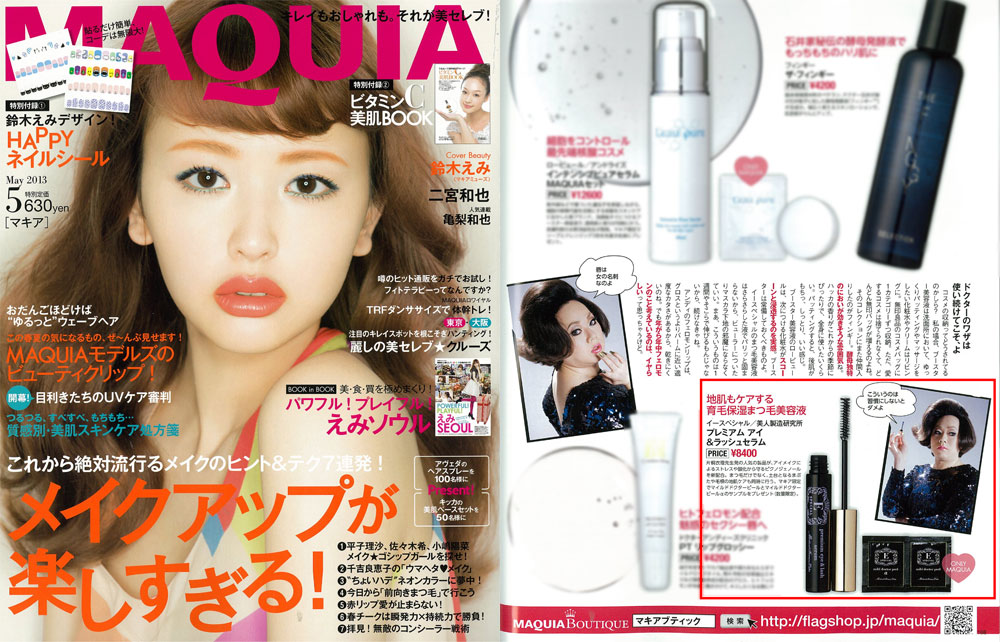 『MAQUIA』5月号、「世にも素敵なビューティ通販」にて、ダイアナ・エクストラバガンザさんより、衣理クリニック表参道院長 片桐衣理がプロデュースするドクターズコスメ“イースペシャル”から「プレミアムアイ&ラッシュセラム」をご紹介頂きました。是非、ご覧下さいませ。