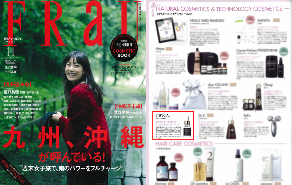 『FRaU』11月号別冊付録、「HANKYU COSMETIC BOOK」にて、衣理クリニック表参道院長 片桐衣理がプロデュースするドクターズコスメ“イースペシャル”より、「マイルドドクターピール」が掲載されました。