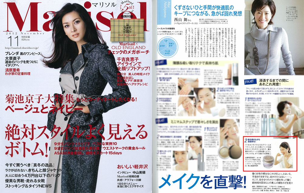 『marisol』11月号、「キレイな人の朝時短メイクを直撃!」にて、ヘア&メイクアップアーティストの西山舞さんが、衣理クリニック表参道院長 片桐衣理がプロデュースするドクターズコスメ“イースペシャル”より、「アクティブクリーム」をご紹介くださいました。是非、ご覧下さいませ。