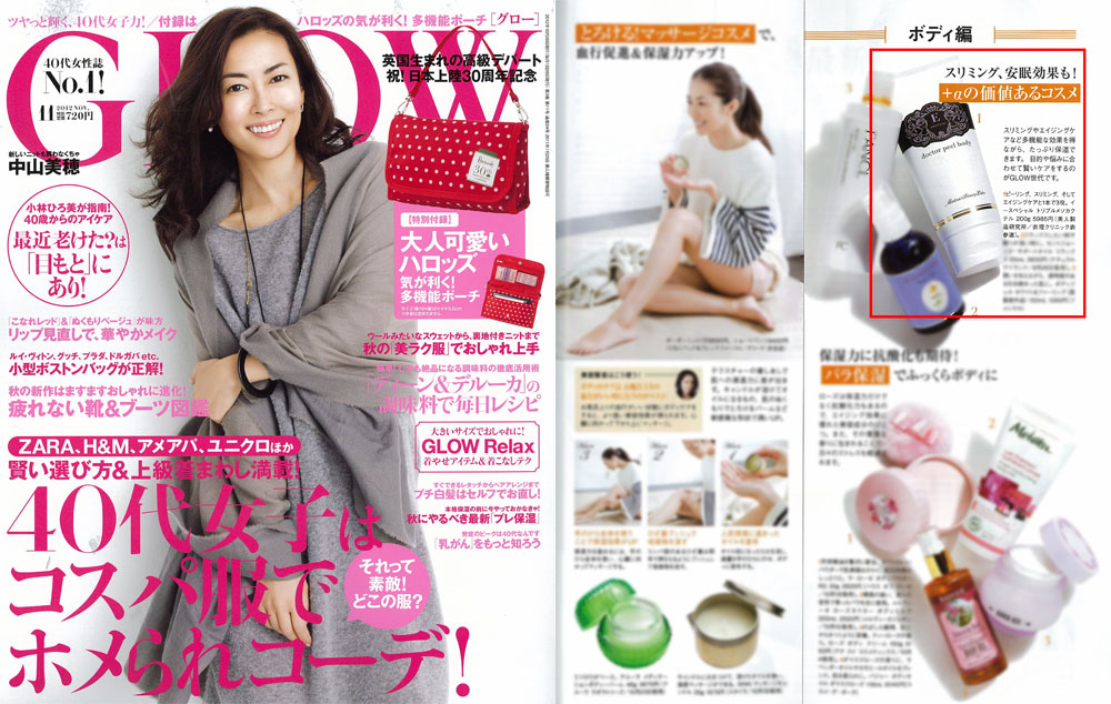 『GLOW』11月号、【秋にやるべき最新「プレ保湿」】にて、衣理クリニック表参道院長 片桐衣理がプロデュースするドクターズコスメ“イースペシャル”より、「ドクターピールボディ」が掲載いたしました。