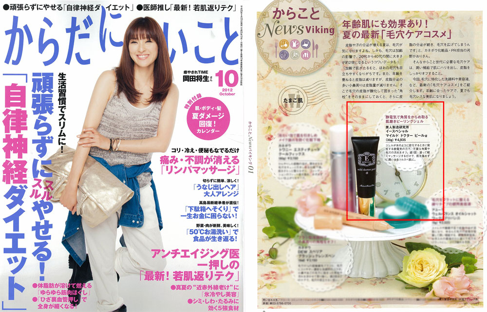 『からだにいいこと』10月号、【年齢肌にも効果有り!夏の最新「毛穴ケアコスメ」】にて、衣理クリニック表参道院長 片桐衣理がプロデュースするドクターズコスメ“イースペシャル”より、「マイルドドクターピールα」をご紹介頂きました。是非ご覧下さいませ。