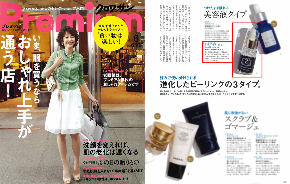『クロワッサンPremium』6月号、「老化した肌にこそピーリングは必要という事実」にて、衣理クリニック表参道院長 片桐衣理がプロデュースするドクターズコスメ“イースペシャル”より、「マイルドドクターピール」が掲載されました。是非、ご覧くださいませ。