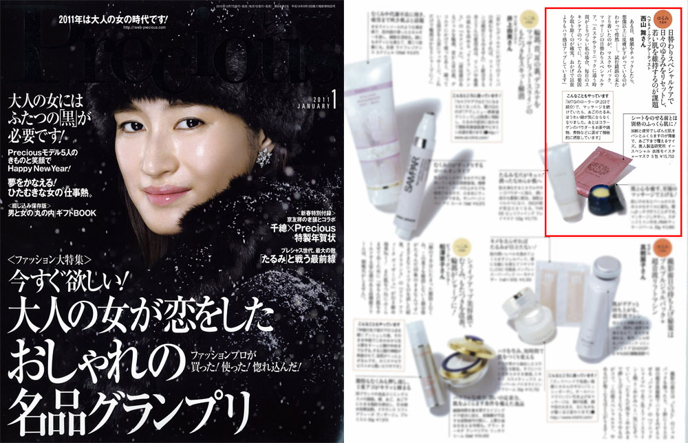『Precious』1月号、【プレシャス世代、最大の敵「たるみ」と戦う最前線】にて、ヘア&メイクアップアーティストの西山舞さんより、西山さんの“日替わりスペシャルケア”の一つとして、衣理クリニック表参道院長 片桐衣理がプロデュースしたドクターズコスメ「イースペシャル 衣理モイスチャーマスク」をご紹介頂きました。是非、ご覧下さいませ。