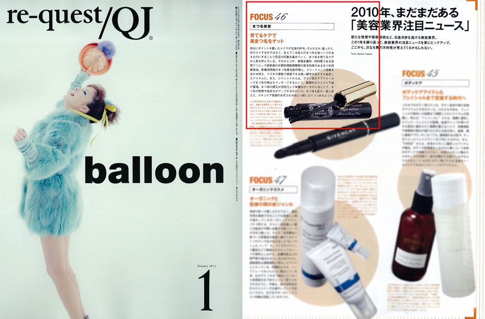 『re-quest/QJ』1月号、「美容業界注目ニュース」にて、衣理クリニック表参道院長 片桐衣理が所長を務める美人製造研究所より「イースペシャル ドラマティカルアイラッシュトリプルアクション」をご紹介頂きました。
