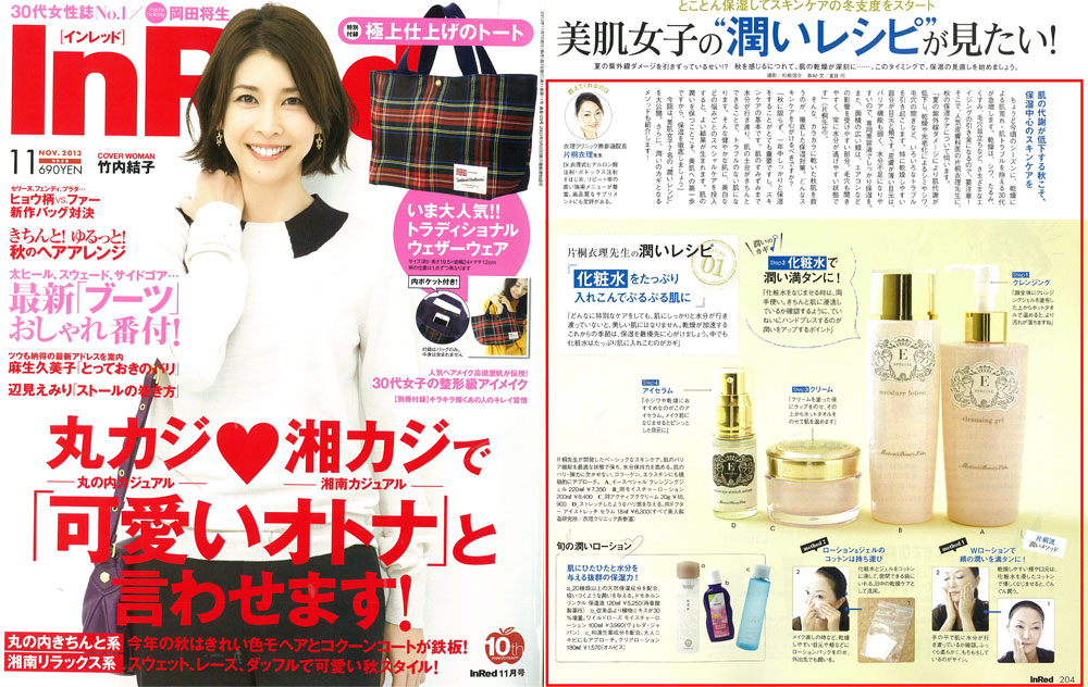 『InRed』11月号、「美肌女子の“潤いレシピ”が見たい!」にて、衣理クリニック表参道院長 片桐衣理が、秋の保湿ケアについてコメントさせて頂きました。また、自身のケア法についてご紹介させて頂いております。是非、ご覧下さいませ。
