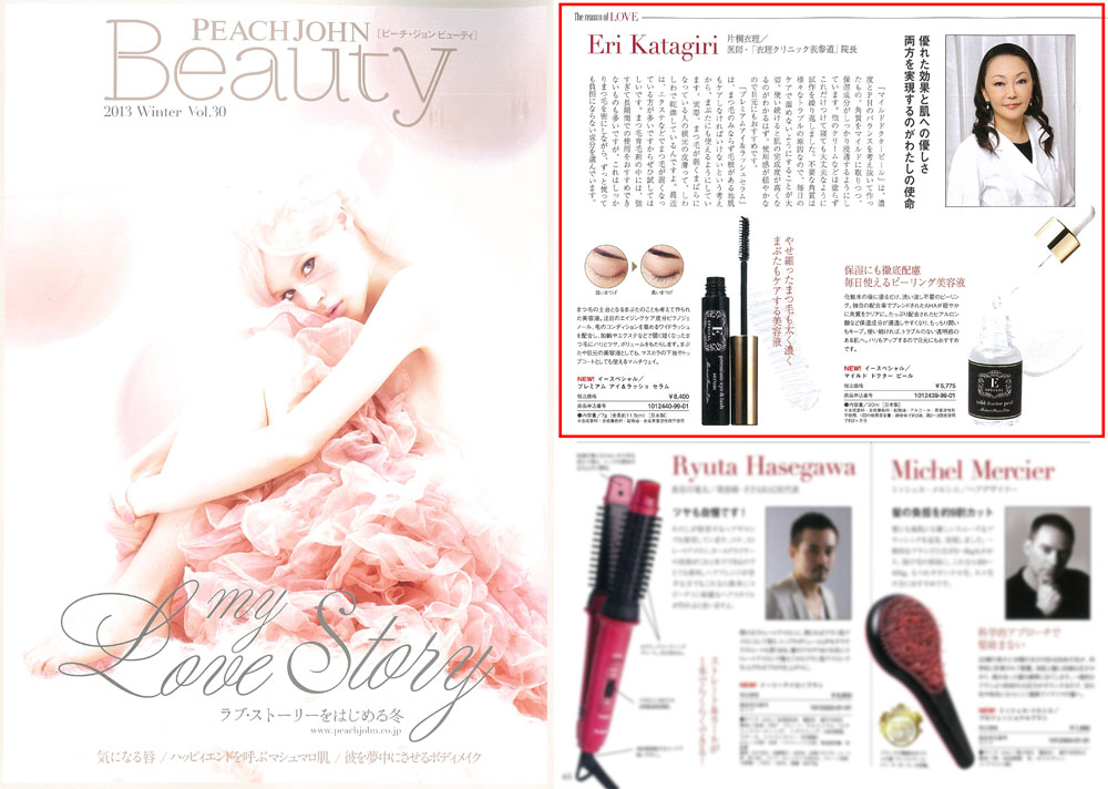 『PEACHJOHN Beauty』冬号、「The reason of LOVE」にて、衣理クリニック表参道院長 片桐衣理が、自身の開発コスメ“イースペシャル”より、「マイルドドクターピール」と「プレミアム アイ&ラッシュセラム」についてコメントさせて頂きました。是非ご覧下さいませ。