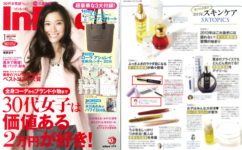 『InRed』1月号、「2013InRedベストコスメ大賞」にて、衣理クリニック表参道院長 片桐衣理が、審査員として参加させて頂きました。また、「イースペシャル プレミアム アイ&ラッシュセラム」が掲載されました。