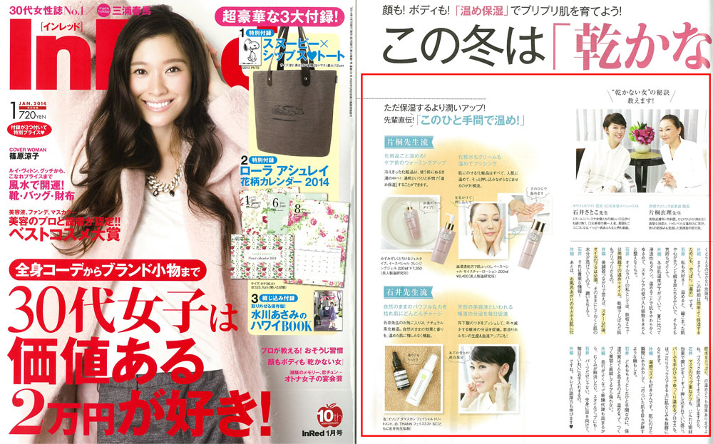 『InRed』1月号、【この冬は「乾かない女」宣言!】にて、衣理クリニック表参道院長 片桐衣理が、ホワイトホワイト院長 石井さとこ先生と対談形式で保湿ケアについてコメントさせて頂きました。また、「イースペシャル 衣理モイスチャーマスク」が掲載されました。是非、ご覧下さいませ。