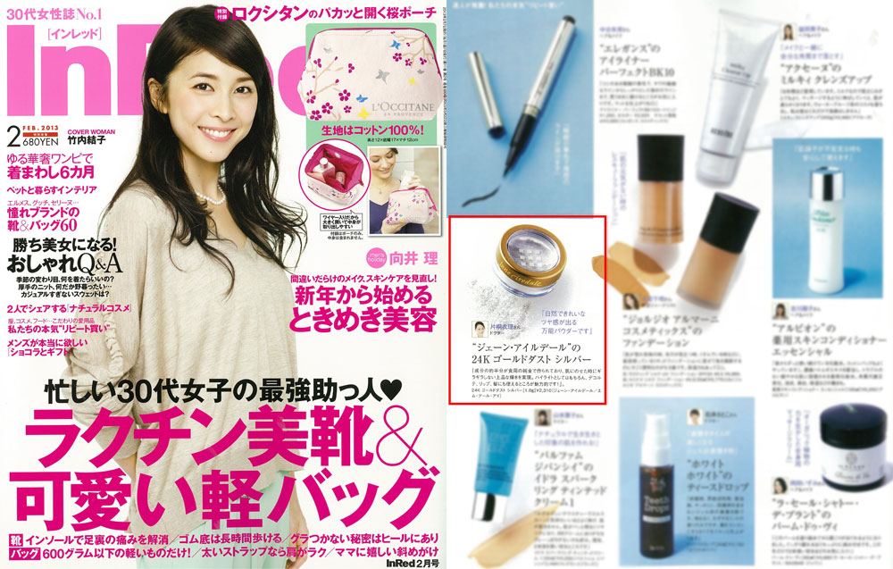 『InRed』2月号、「達人が推薦!私たちの本気“リピート買い”」にて、衣理クリニック表参道院長 片桐衣理が、おすすめのアイテムとして、ジェーン・アイルデールの『24カラット・ゴールドダスト シルバー』をご紹介させて頂きました。是非、ご覧下さいませ。