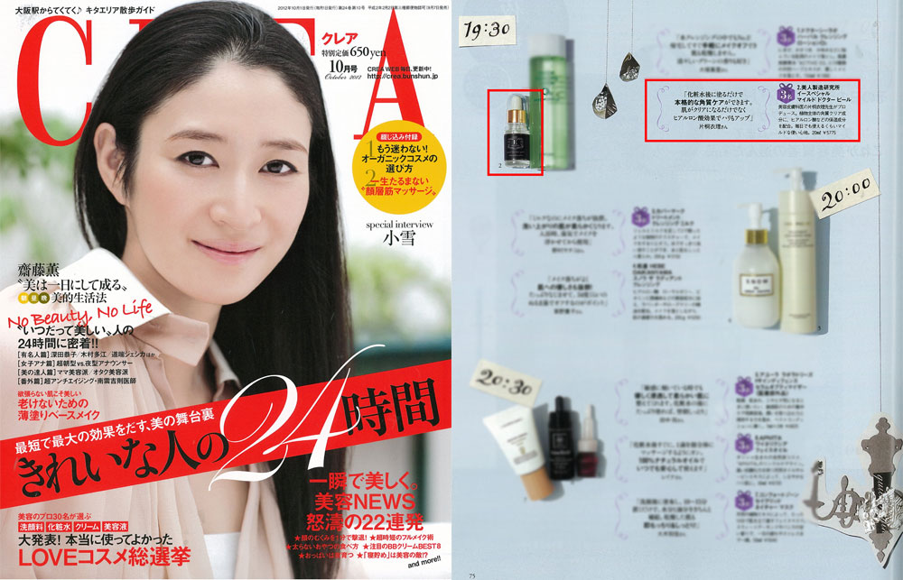 『CREA』10月号、「大発表!美容のプロ30人が本当に毎日使っているラブコスメ80」にて、衣理クリニック表参道院長 片桐衣理が、夜の定番愛用コスメとして、自身プロデュースコスメ“イースペシャル”より、「マイルドドクターピール」をご紹介させていただきました。 是非ご覧下さいませ。