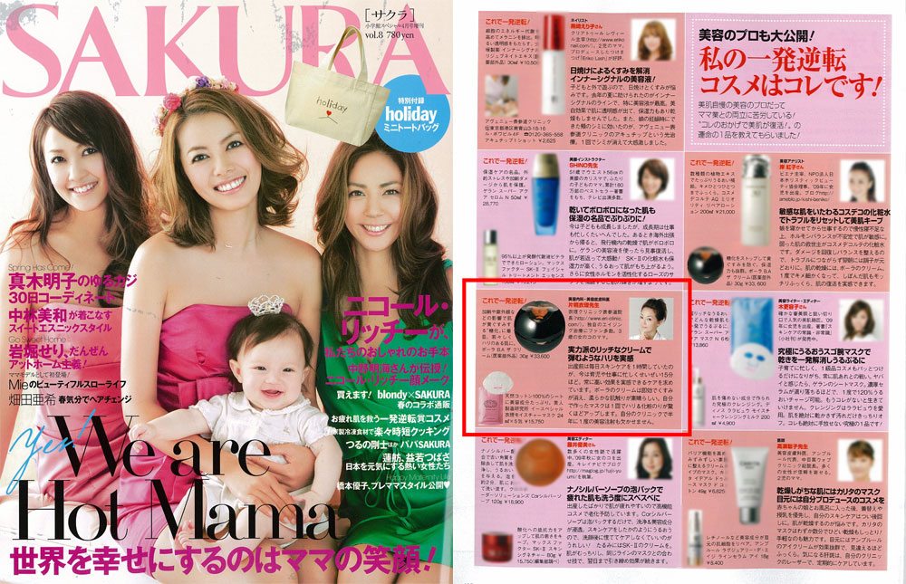 『SAKURA』Vol.8、「美容のプロも大公開!私の一発逆転コスメはコレです!」にて、衣理クリニック表参道院長 片桐衣理が、おすすめのコスメとイースペシャル 衣理モイスチャーマスクをご紹介させていただきました。是非、ご覧下さいませ。