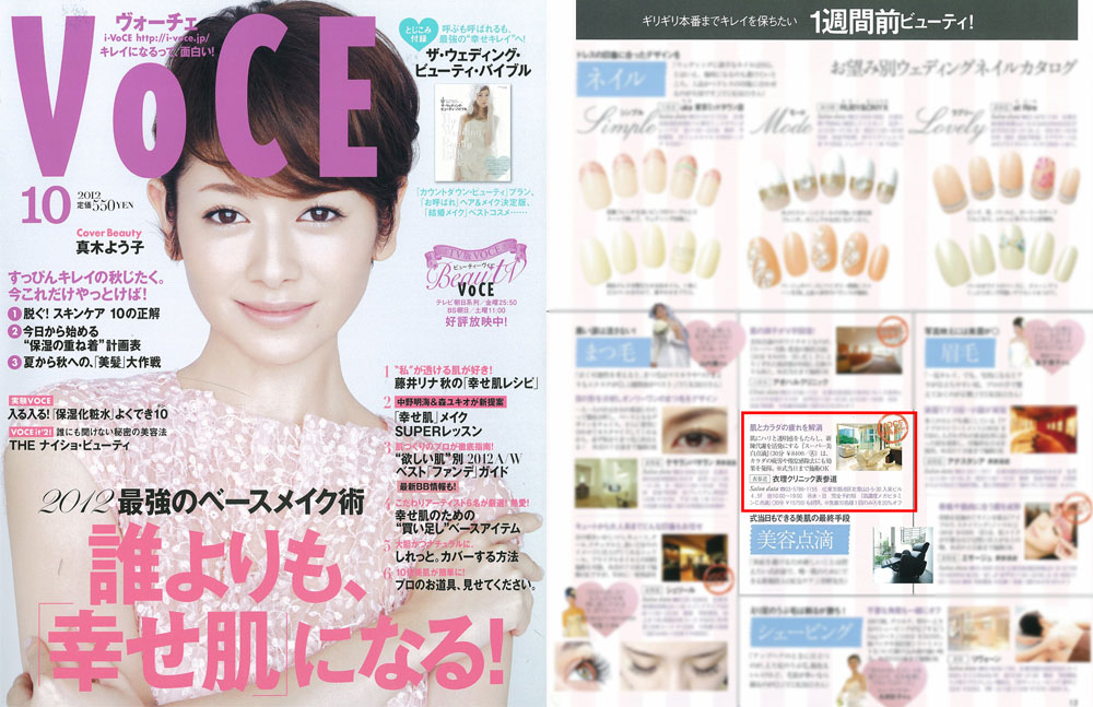 『VoCE』10月号、「ウェディング直前鉄板ビューティList」にて、衣理クリニック表参道が掲載され、「スーパー美白点滴」をご紹介いただきました。読者限定メニューもご提供させていただいております。