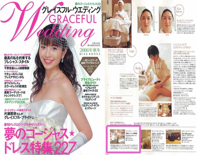 「グレイスフル・ウエディング秋冬号」企画「花嫁のビューティ・カレンダー」の中で、衣理クリニック表参道(エリクリニック)のブライダルコース(ブライダルメディカル脱毛、ブライダルメディカルスキンケア)が紹介されています。