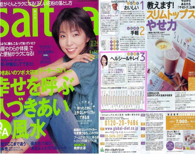 「saita2/24号」の企画「スリムトップスのやせ力」として、スリムトップスの栄養バランスについて、またダイエット理論について衣理クリニック表参道(エリクリニック)院長 片桐衣理がコメントしています。