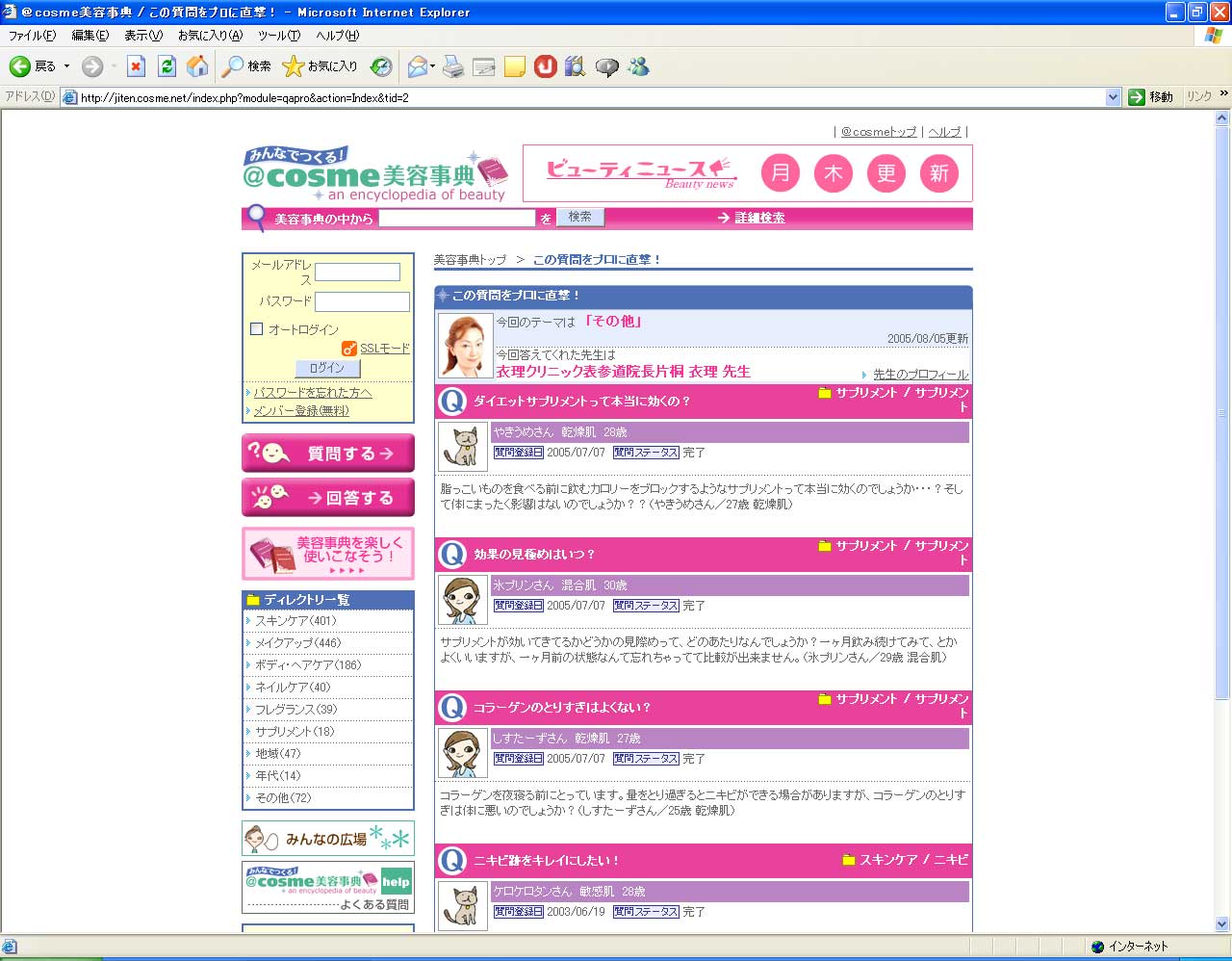 @cosme美容事典「この質問をプロに直撃!」の中で、衣理クリニック表参道(エリクリニック)院長 片桐衣理がコスメや美容の様々な疑問・お悩みにお答えしています。今回は、サプリメントやニキビ跡についてのアドバイスです。