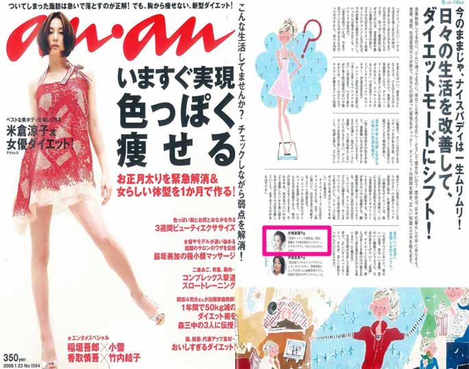 「anan1594号」企画「日々の生活を改善して、ダイエットモードにシフト!」の中で、衣理クリニック表参道(エリクリニック)院長 片桐衣理が「間違った習慣」と「その改善方法」等について、アドバイスしています。