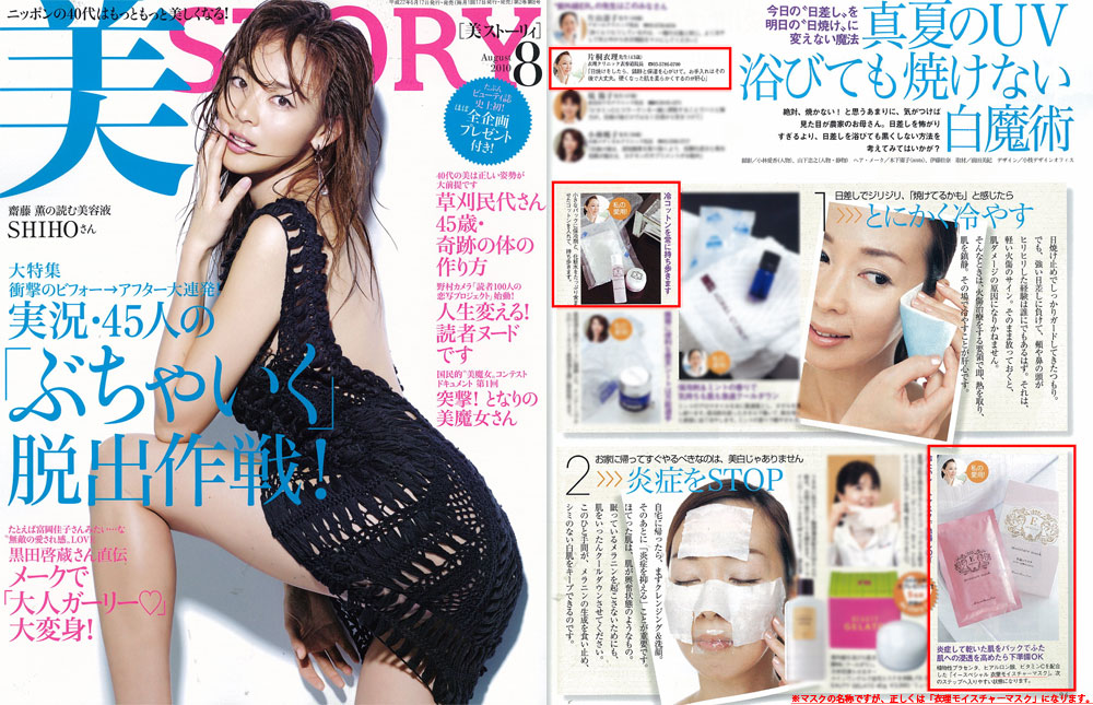 『美STORY』8月号、「真夏のUV浴びても焼けない白魔術」にて、衣理クリニック表参道院長 片桐衣理が、日焼後の処置についておすすめの方法・アイテム等をご紹介させていただきました。
