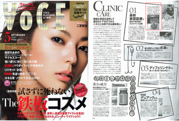 『CLASSY』2月号、「絶対なくす!大人のニキビ徹底研究」にて、衣理クリニック表参道院長 片桐衣理がニキビの正しい知識や処置方法についてコメントをさせていただき、クリニックで処方している「BHA」・「レチノイン酸」・「ハイドロキノン」・「「エストロジェル」と美人製造研究所のイースペシャル「 クレンジングジェル」・「 アクティブクリーム」をご紹介させていただきました。