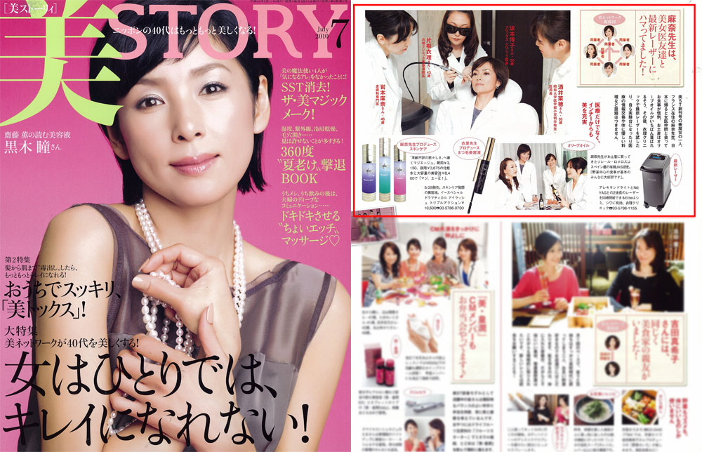 『美STORY』7月号大特集内、「私たち、美友達がいるからキレイになれます!」にて、皮膚科専門医の岩本麻奈さんの女医友達の1人として衣理クリニック表参道院長 片桐衣理が紹介されました。当院にて、女医仲間と最新レーザー(ニューレーザーフェイシャル)を試している様子などが掲載されております。