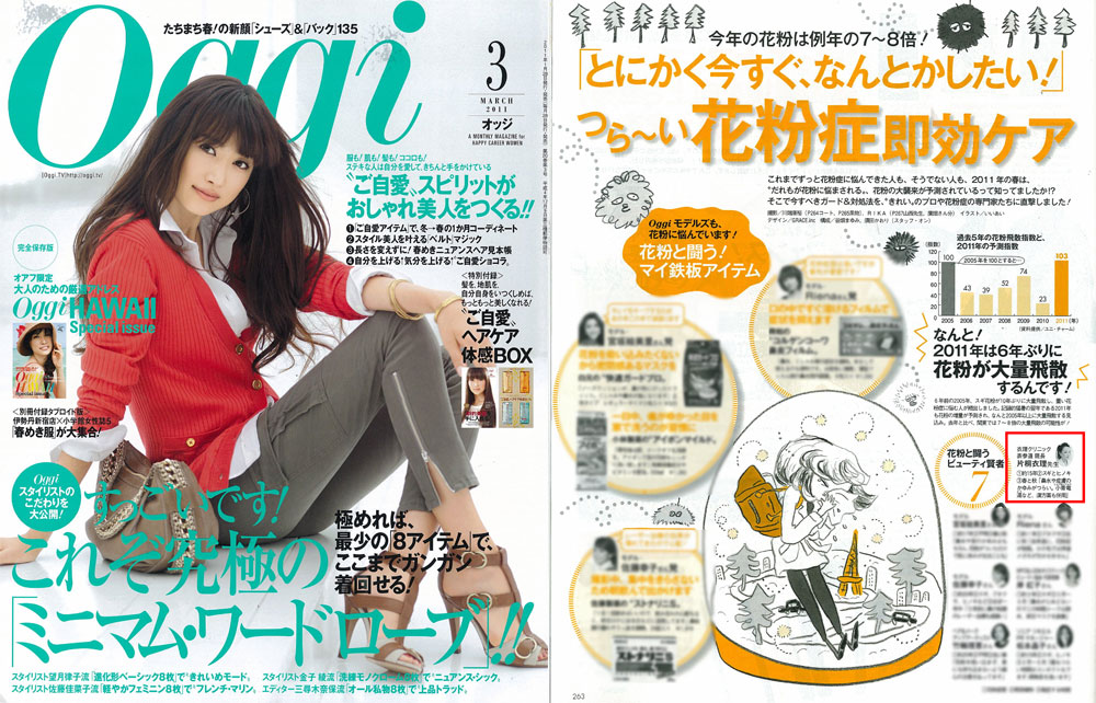 『Oggi』3月号、「つら〜い花粉症即効ケア」にて、衣理クリニック表参道院長 片桐衣理が、花粉症対策法についてコメントさせていただきました。