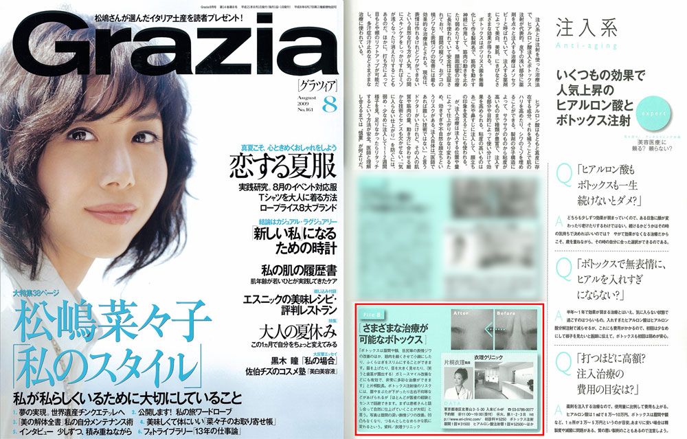 『Grazia』8月号に衣理クリニック表参道が掲載されました