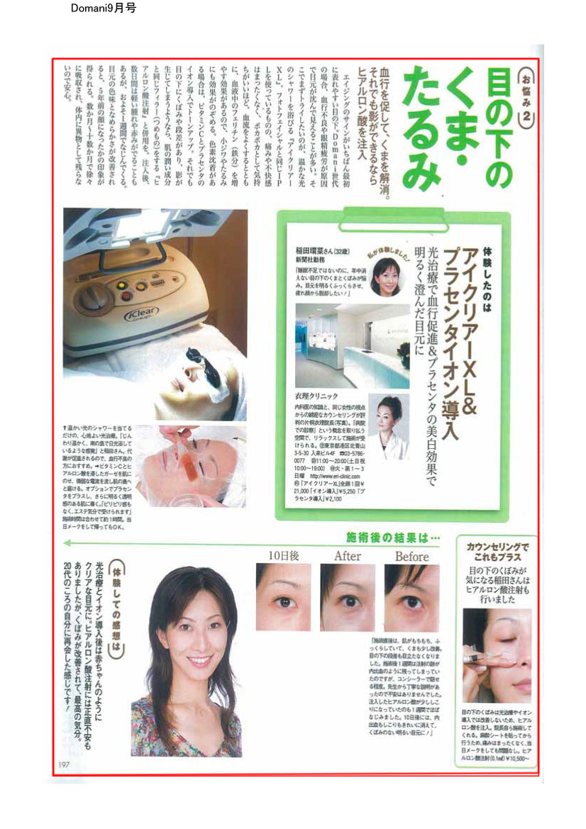 『Domani』9月号に衣理クリニック表参道が掲載されました
