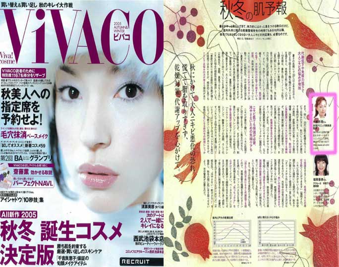 「VIVACO AUTUMN&WINTER号」の特集「秋冬の肌予報」として衣理クリニック表参道(エリクリニック) 院長 片桐衣理が秋から冬にかけての肌がどういう状態になっているか、どんな対処が必要かをアドバイスしています。