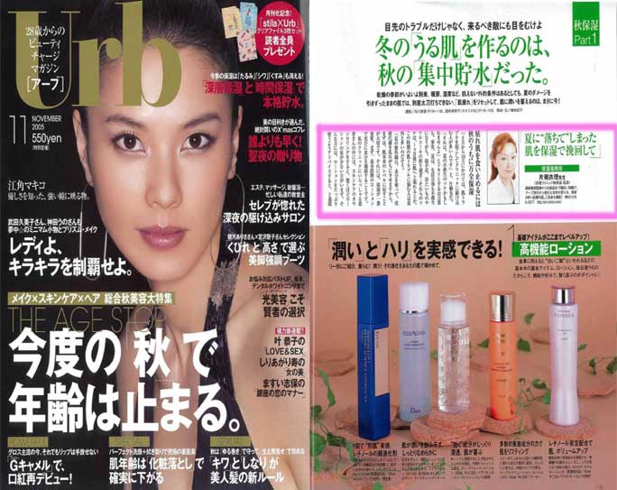「Urb12月号」の特集「秋肌には1手前の保湿」で衣理クリニック表参道(エリクリニック) 院長 片桐衣理がなぜ秋に保湿が必要なのか、夏のダメージの要因と肌への影響についてアドバイスしています。