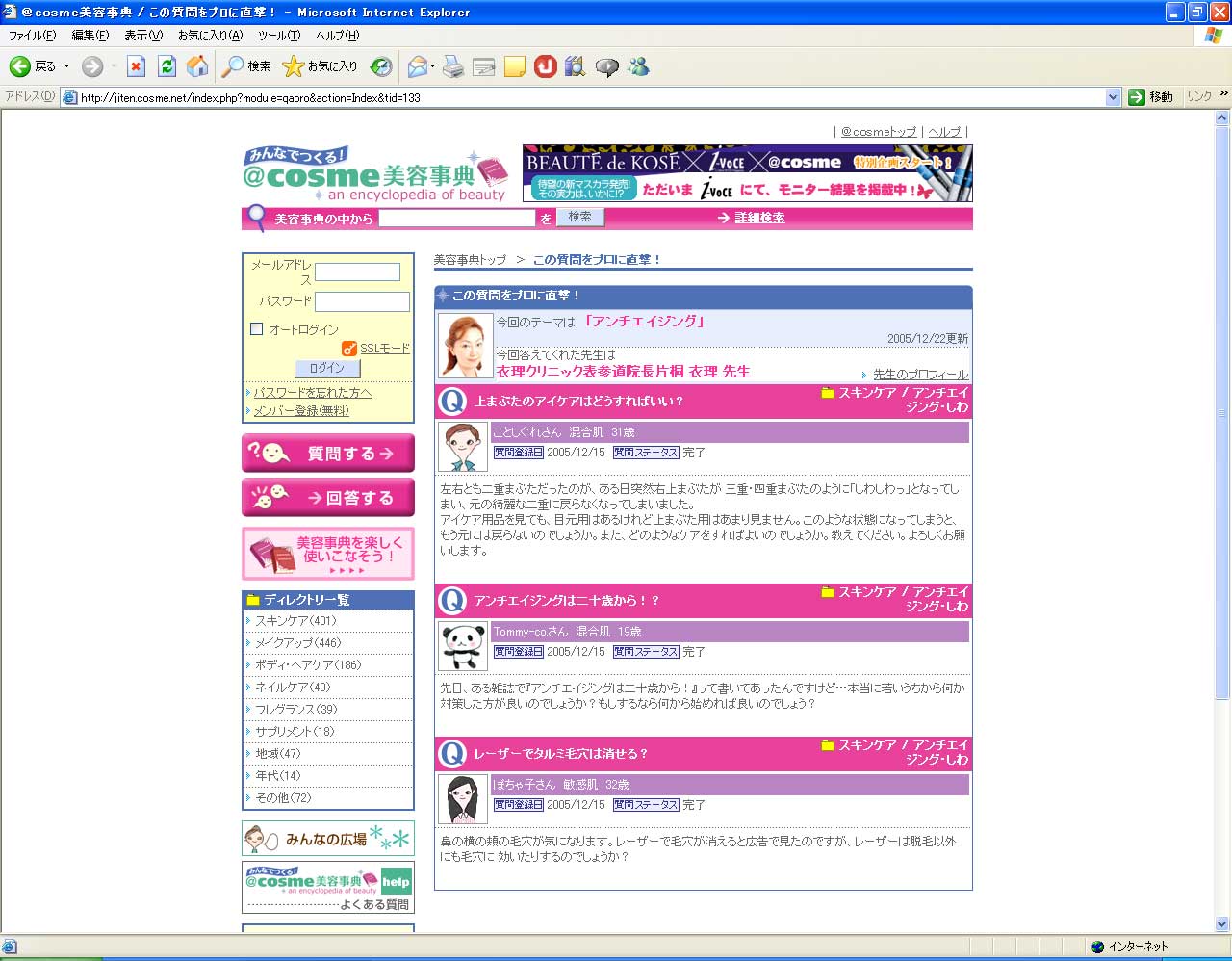 @cosme美容事典「この質問をプロに直撃!」の中で、衣理クリニック表参道(エリクリニック)院長 片桐衣理がコスメや美容の様々な疑問・お悩みにお答えしています。今回のテーマは 「アンチエイジング」です。