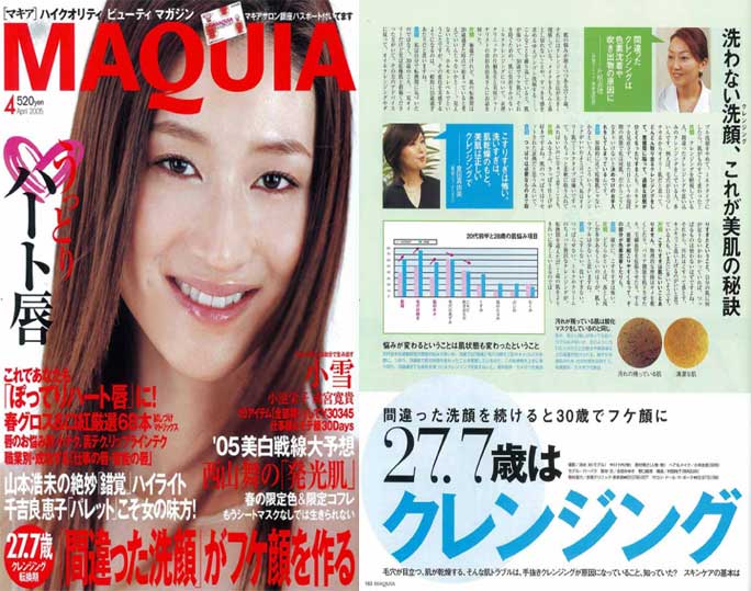 「MAQUIA4月号」の企画「27.7歳はクレンジング」として美容ジャーナリストである倉田真由美さんと美肌の秘訣について衣理クリニック表参道(エリクリニック)院長 片桐衣理との対談記事が紹介されました。